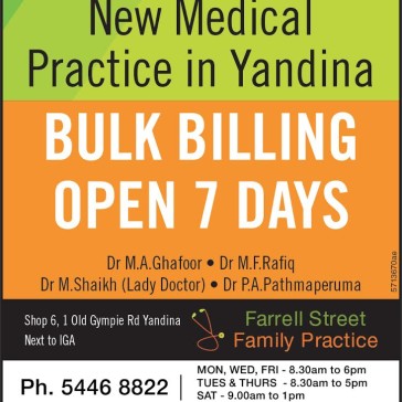 Bulk billing practice Open 7 days a week. Availability of Male & Female doctors